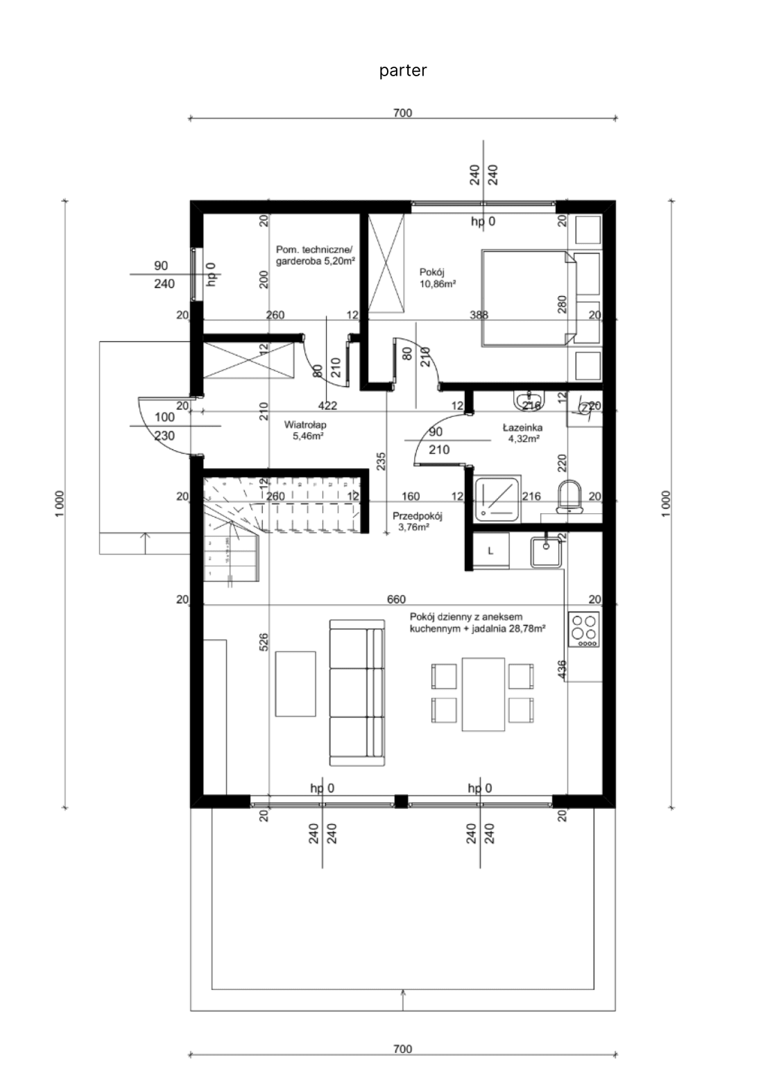 Przestronne okno górne oraz drzwi tarasowe