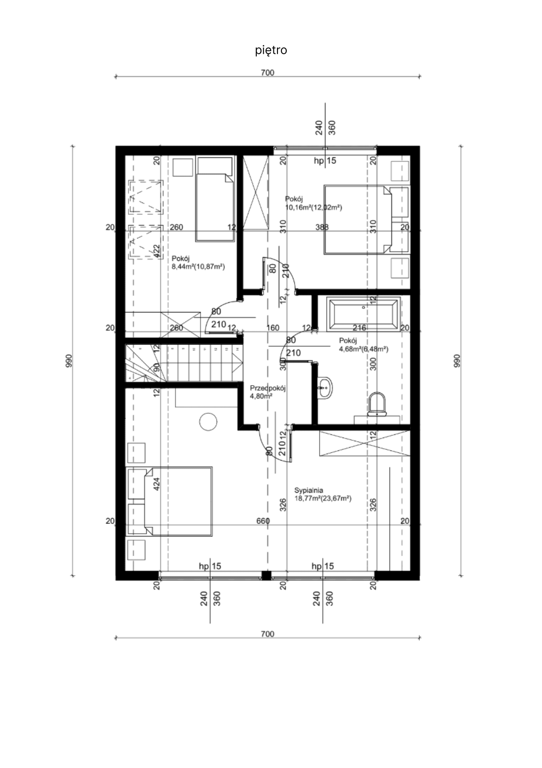Powierzchnia liczona po podłodze, bez uwzględnienia ścian działowych